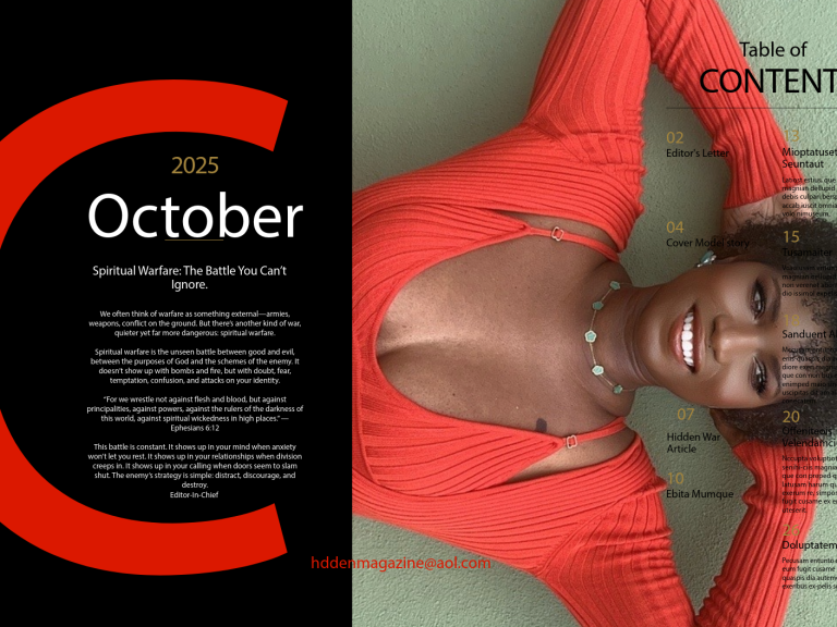 Every page of HDDEN Magazine seeks to embody honesty without fabrication, truth without filters, and stories that are raw, redemptive, and God-authored. Our purpose is to create a platform where authenticity, spirituality, and creativity meet — offering readers both inspiration and a reminder that even what is hidden can be holy, powerful, and made manifest.